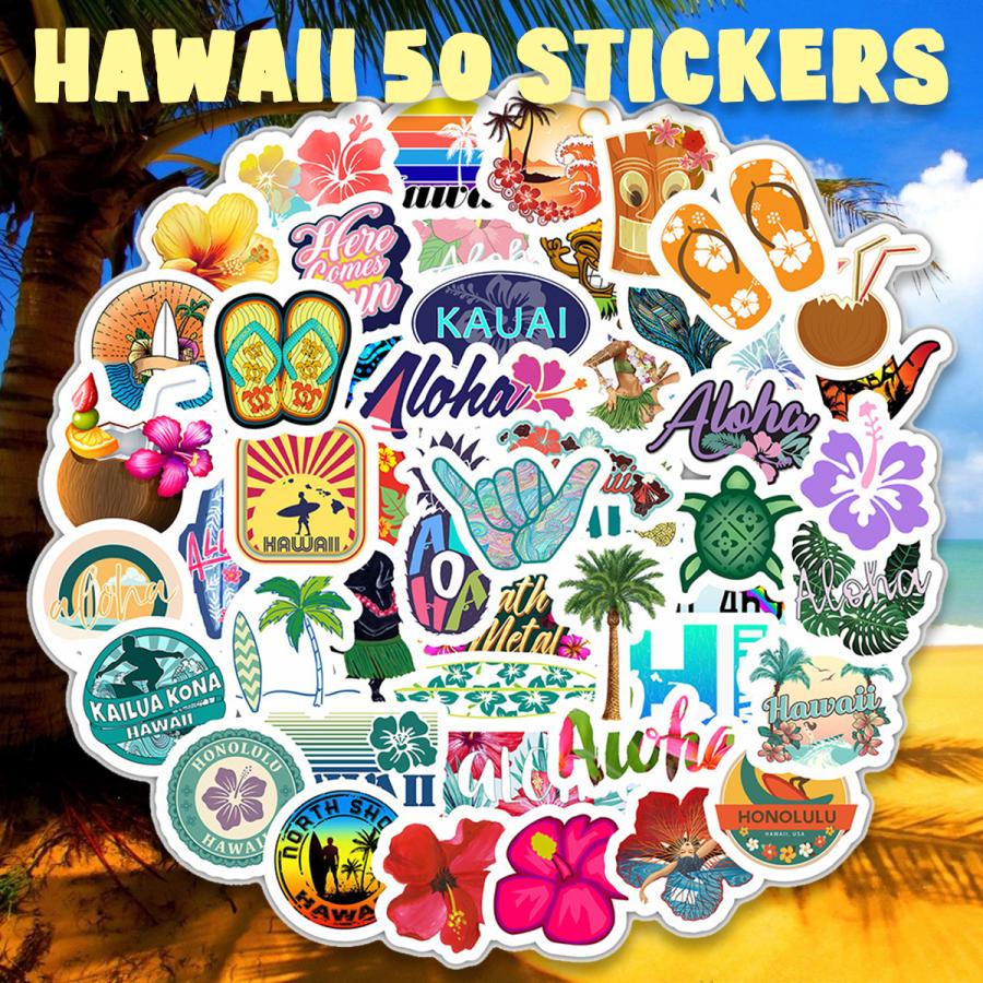 Amazon Co Jp ハワイステッカーセット 50枚入り アロハ防水デカール ハワイシールパック スーツケース ノートパソコン バイク ヘルメットなど適用 文房具 オフィス用品